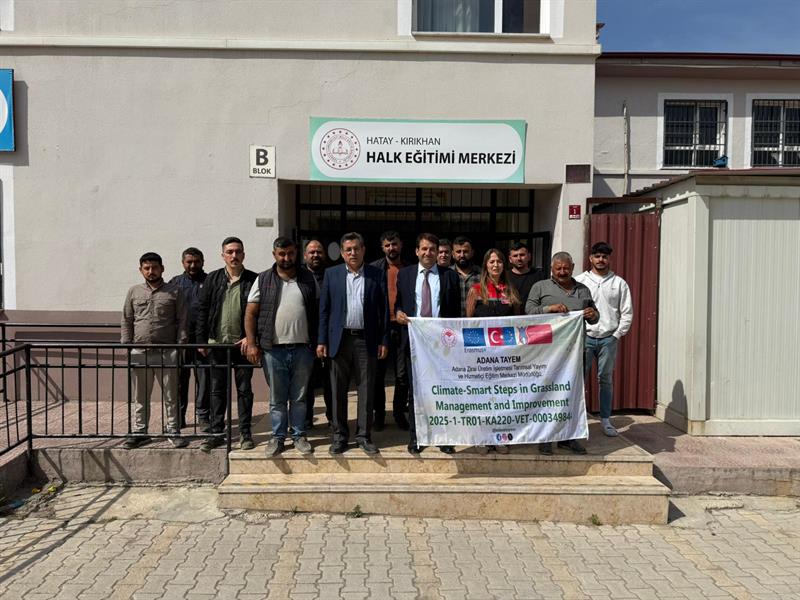 At the end of the training, Dr. Bülent Ayhan, Director of Adana TAYEM, provided information about the SMART STEP Project (2025-1-TR01-KA220-VET000349844), in which our Training Center Directorate is among the partners. During the presentation, the importance of climate change-adaptive production models was emphasized, and information was shared regarding pasture and rangeland management, efficient use of natural resources, and the dissemination of climate-friendly agricultural practices within the scope of the project.